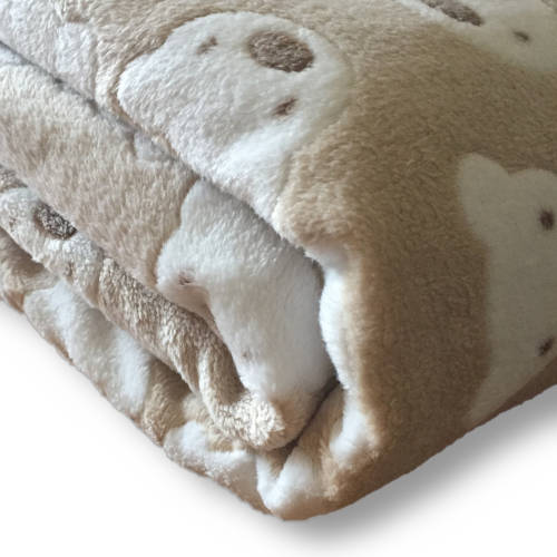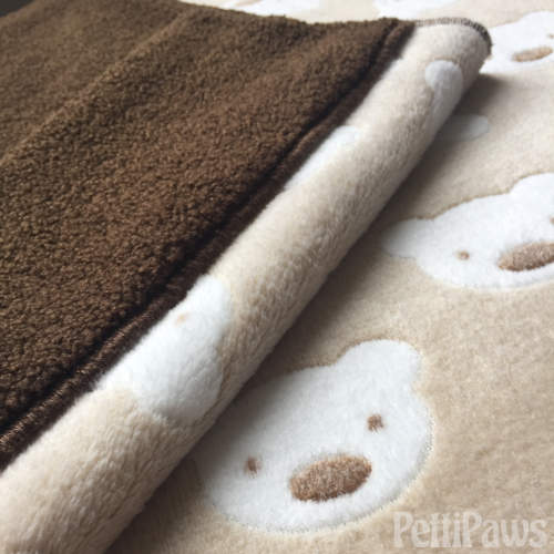 Our teddy bear pet blanket is suitable for both dogs and cats. Made from 2 luxuriously soft fleece blankets. Cute and cuddly teddy bear faces on one side and a warm chocolate brown sherpa fleece on the other. This is a warm and very comfortable blanket that any pet will enjoy.